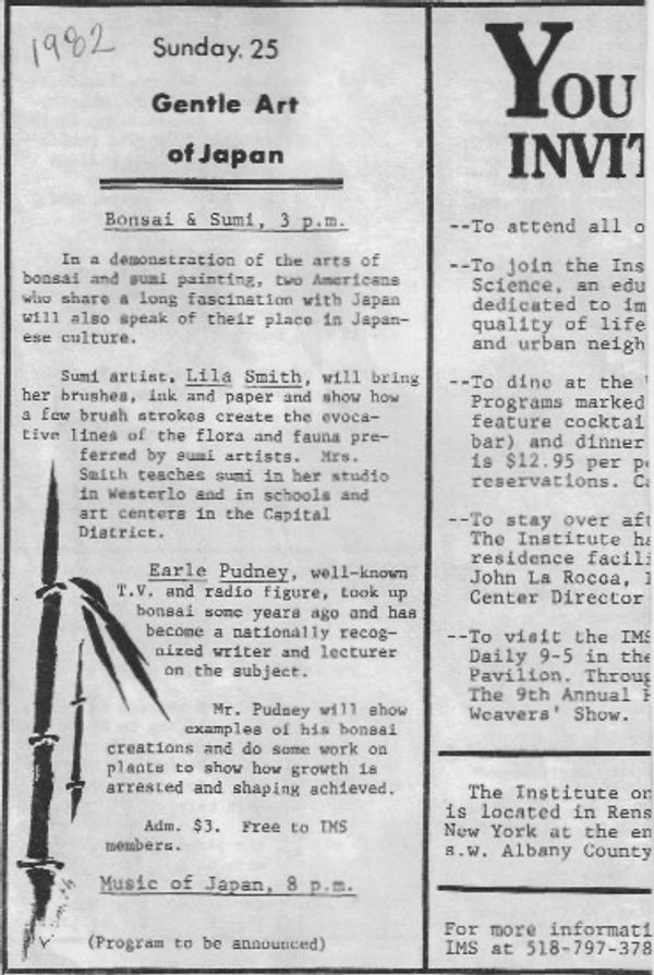 Twenty years later, one of the summer programs held at the Institute of Man and Science — now the Hilltown Commons — was a series of lectures about Japanese culture. Members of the ISHP contributed to the program.